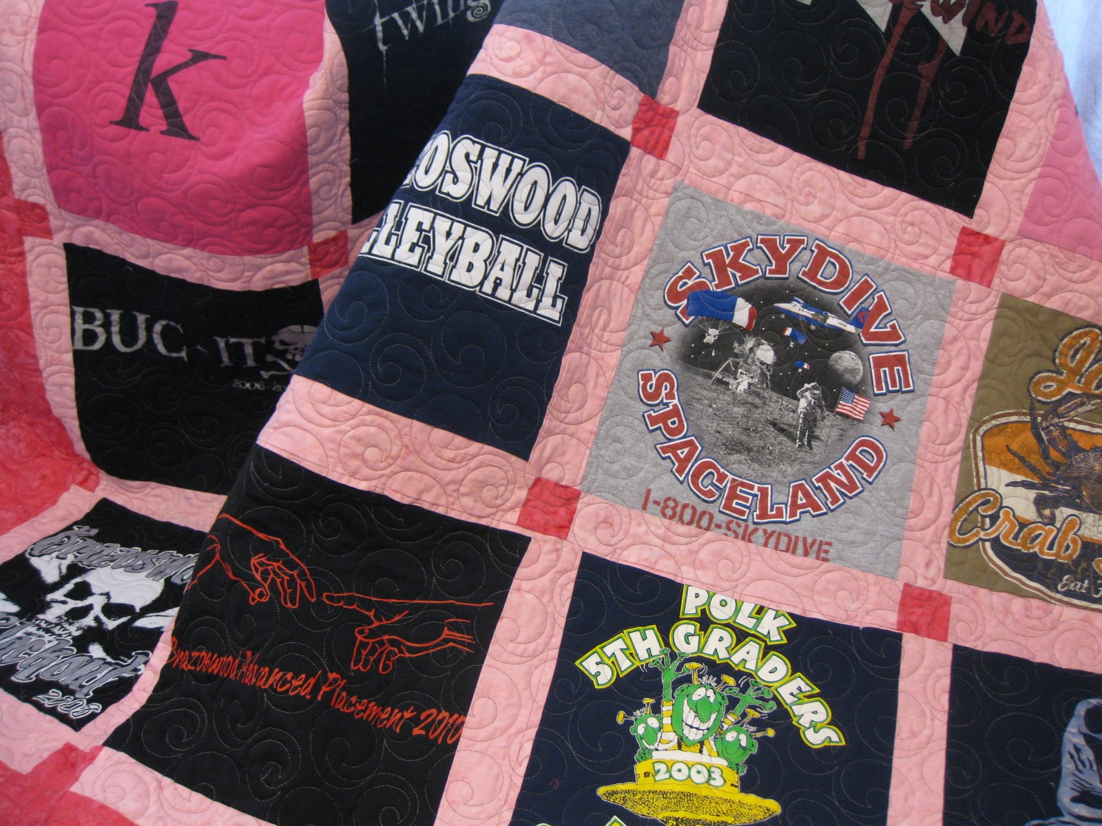 I quilted Carrie's t-shirt quilt just before my long arm caught the flu.